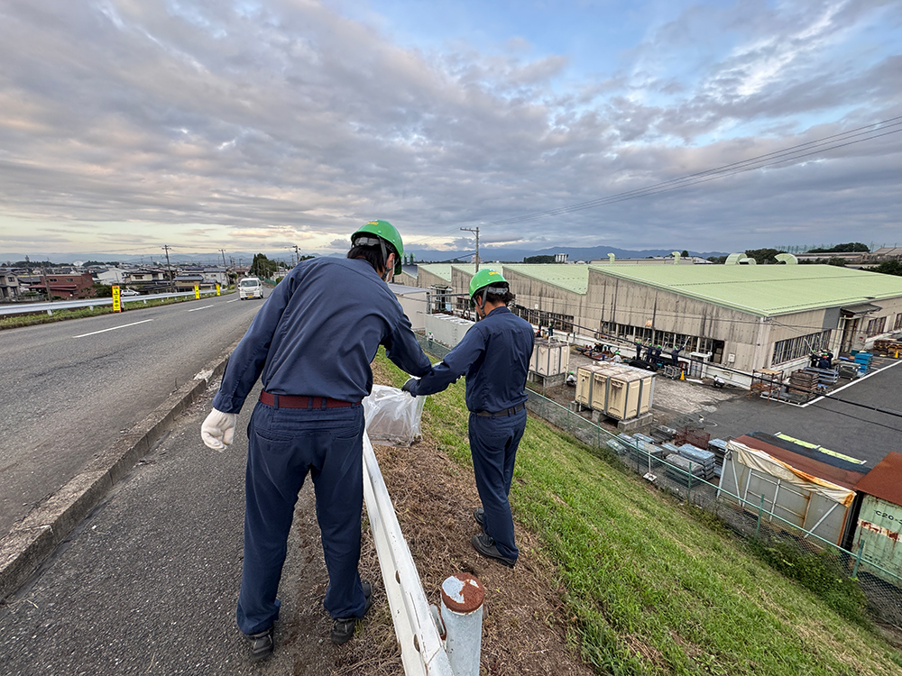 CASE05 令和7年度 第3回 クリーンの日活動 活動内容 イワフジ工業では、「クリーンの日」という清掃活動を定期的に実施しています。 2025年9月12日、本社・工場敷地内と周辺道路の清掃活動を行いました。