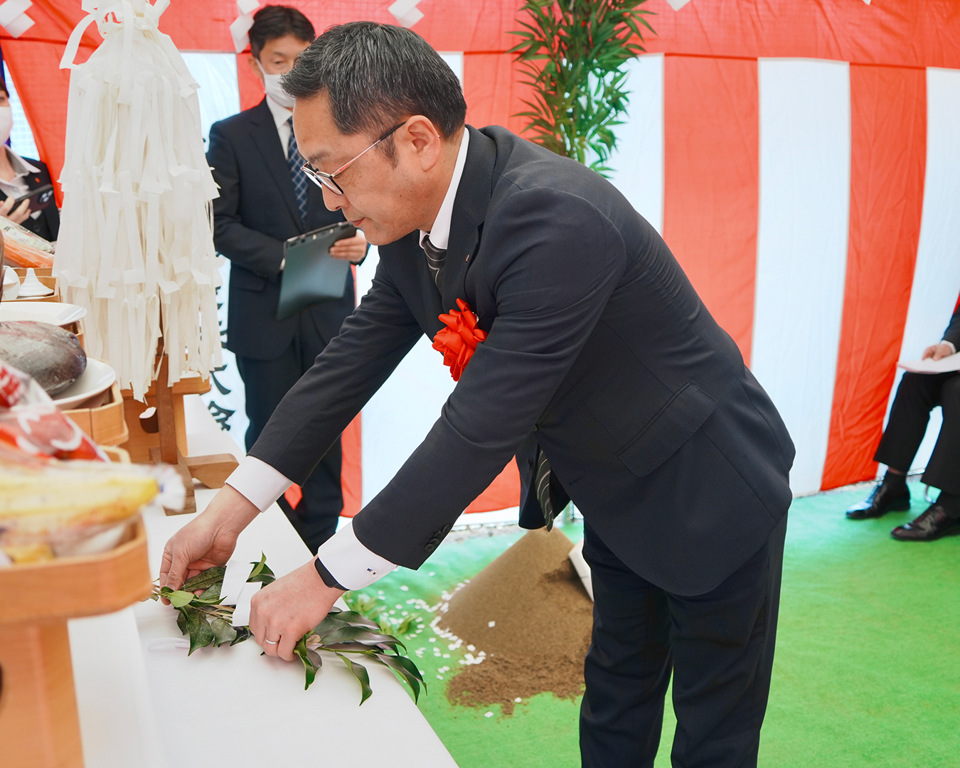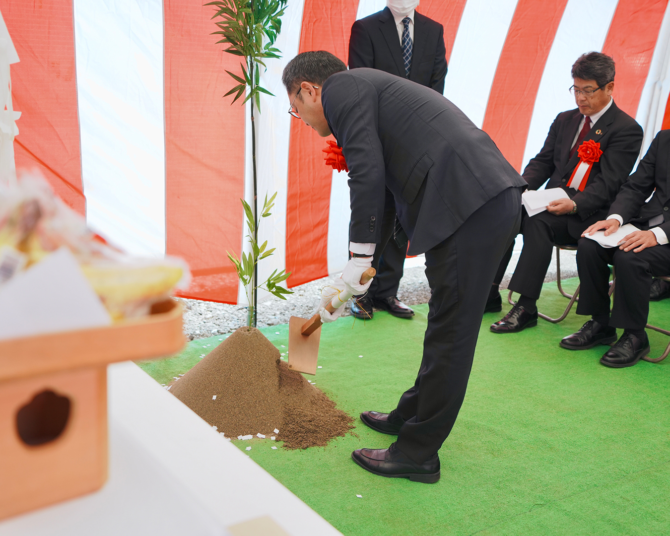 記事公開日 2026/04/14 新事務所棟他新築工事 地鎮祭を執り行いました お知らせ Tweet 4月10日(木)、本社・工場にて新事務所棟他新築工事 地鎮祭が桜咲く晴天の中、執り行われました。その時の様子をお送りいたします。現事務所棟を東側の正門近くに移転を予定しており、長期計画で敷地内の建物配置の見直しや工場などの増築で生産能力向上を図っていきます。 Tweet