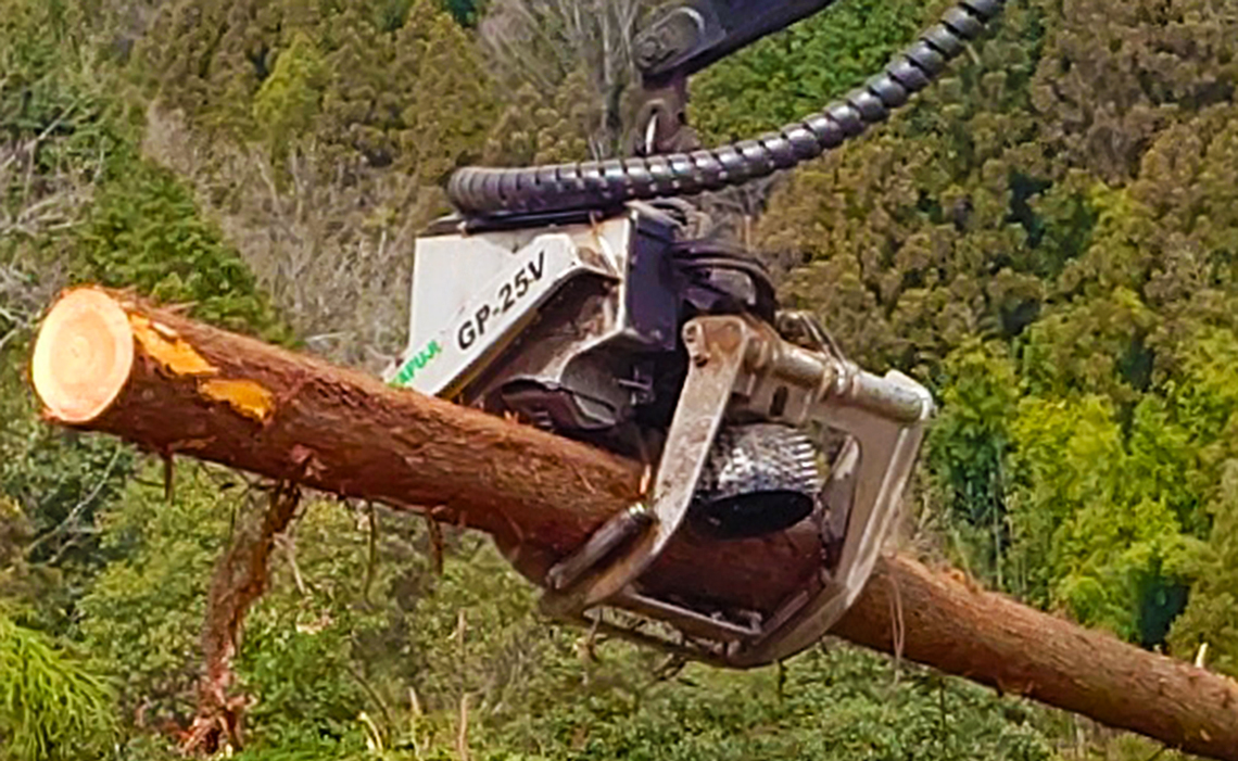 汎用性の高いグラップルは伐出作業において欠かすことのできない機械